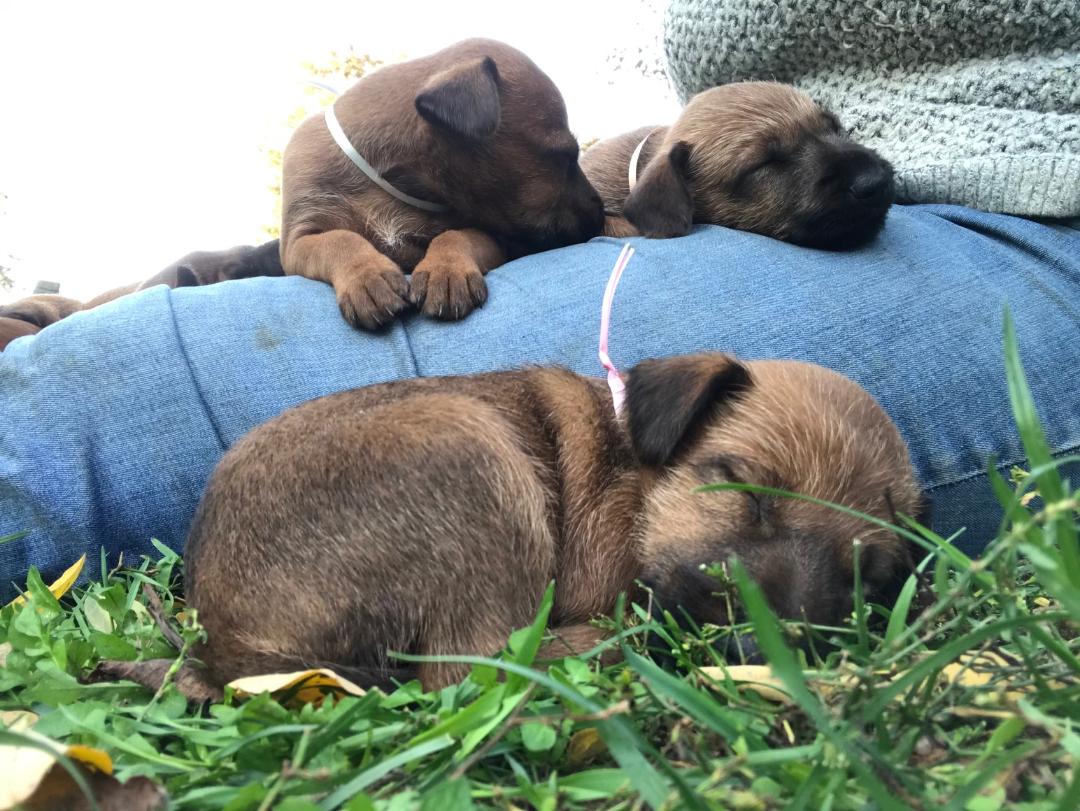 Die Welpen werden von uns bestens geprägt und auf ihr zukünftiges Leben vorbereitet. Sie sind regelmäßig entwurmt, geimpft und bekommen einen EU-Heimtierpass sowie Papiere vom Klub für Terrier e.V. (VDH, FCI). Die Elterntiere sind genetisch 100% Corny-Feet-frei (N/N).