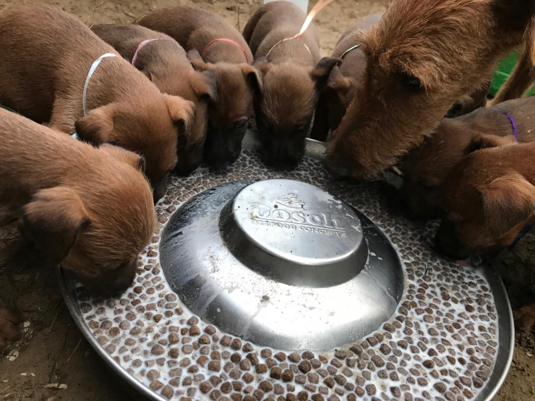 Natürlich achten wir auch auf eine hochwertige Ernährung und bieten den Hunden bestes Futter von Anfang an.
